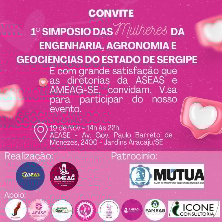 Promovido em parceria com a ASEAS e com o apoio de instituições e patrocinadores comprometidos com a equidade de gênero, o simpósio tem como propósito destacar o protagonismo das mulheres e promover o empoderamento feminino nas profissões ligadas à Engenharia, Agronomia e Geociências.